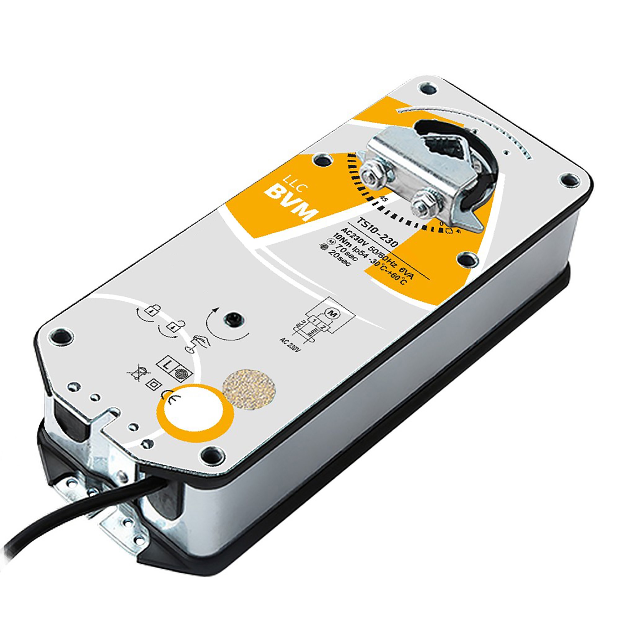 Крутящий момент в 10 Нм обеспечивает уверенное управление даже большими и тяжелыми воздушными заслонками, гарантируя точное перекрытие и регулировку воздушного потока. Рабочее напряжение AC 230V позволяет легко интегрировать привод в существующие электрические сети, минимизируя затраты на установку и подключение.
